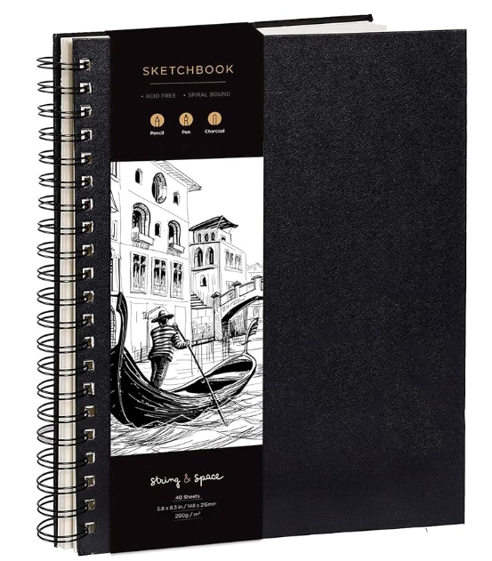Although you can use any journal, I recommend using one with rings, as it is a little better as your journal gets thicker. My favorites are an artist’s sketchbook, as the pages are a little thicker and can handle taping/gluing lots of bits and bobs onto it. Eventually, any regular journal will get quite thick and not close properly (which is why I prefer junk-scrapbooking) but a journal/notebook with rings is one that will last and hold its shape the longest. Here’s an example of a great beginner junk journal notebook linked on Amazon: